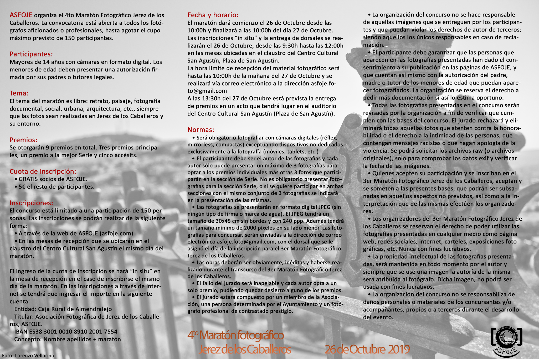 PARA ESTAR INFORMADO DE TODAS LAS NORMAS, NO OLVIDES ECHAR UN VISTAZO A LAS BASES COMPLETAS DEL 4to MARATÓN FOTOGRÁFICO JEREZ DE LOS CABALLEROS.